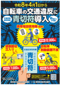 令和8年4月1日より、自転車の交通違反に対して「青切符制度」が導入されます。